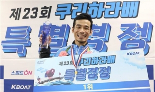 김완석이 완벽한 인빠지기로 쿠리하라배 특별경정 트로피를 거머쥐었다. 김완석은 30일 경기도 하남 미사경정장에서 열린 제23회 쿠리하라 특별경정에서 1코스에 출전해 1턴 마크 인..