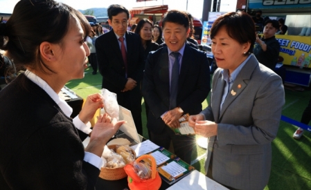 송미령 농림축산식품부 장관은 31일 "이번 APEC 정상회의를 계기로 많은 참가자들이 '케이(K)-푸드'의 다채로운 맛과 우수성을 느끼길 바란다"고 밝혔다. 송 장관은 이날 경북 경주 아시아태평양경제협력체(APEC) 정상회의장 인근에서 운영 중인 'K-푸드 스테이션'을 방문해 이같이 말했다. 해당 스테이션은 농식품부가 APEC 정상회의 기획단과 협업해 마련한 것으로 다음달 1일까지 운영된다. K-디저트 및 할랄인증 제품 부스에서 APEC 참가자들을 대상으로 호떡·약과 등 우리나라 전통 다과를 알리고, 수출용 할랄식품 체험 기회도..