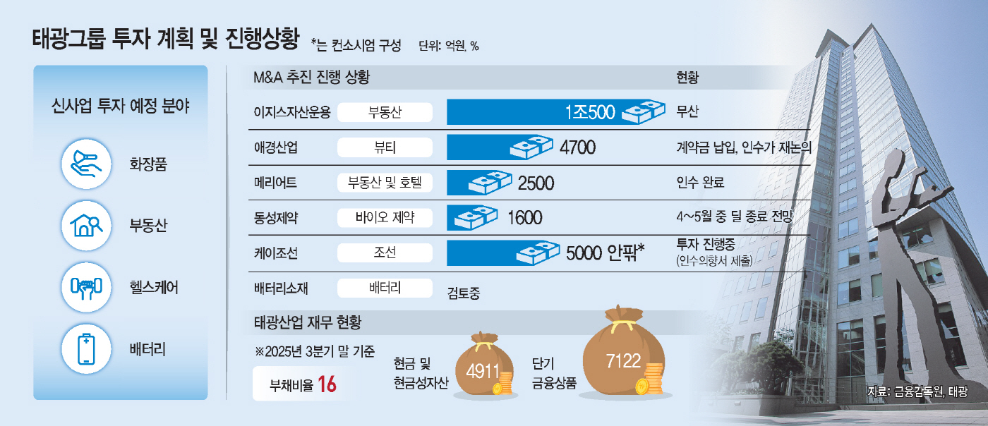 M&A 변수 잇단 난관에도… 1兆 실탄 쥔 태광, 신사업..