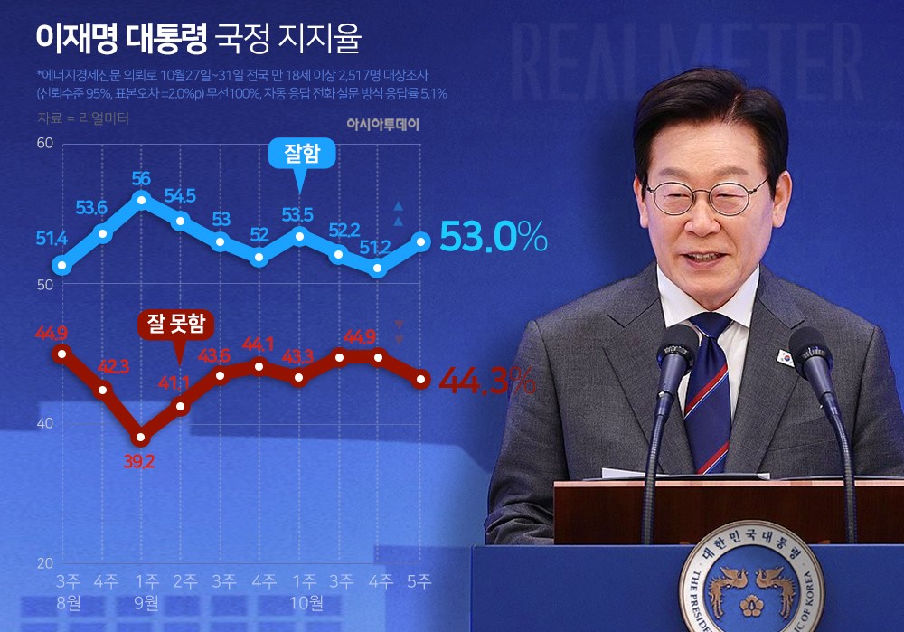 李 국정수행 지지도 53%...직전조사 대비 소폭 상승..