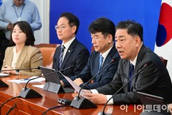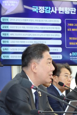 김병기 더불어민주당 원내대표가 28일 국회에서 열린 국정감사 대책회의에서 모두발언을 하고 있다.