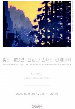 빛은 세상을 드러내는 가장 근원적인 매개이지만, 그 속에는 숨겨진 어둠이 있다. 화가 박진(朴眞)은 그 역설의 지점에서 존재를 바라본다. 오는 11월 15일부터 26일까지 서울 강남구 삼성로의 갤러리 보고재에서 열리는 개인전 〈빛의 재발견: 현상과 존재의 경계에서〉는 작가가 수년간 천착해온 ‘빛의 철학’을 본격적으로 드러내는 자리다. 빛에서 신의 존재를 발견한다. ◇ 박진의 캔버스에는 숲, 건축물, 물, 그리고 그 사이를 흐르는 빛이 있다.이번..