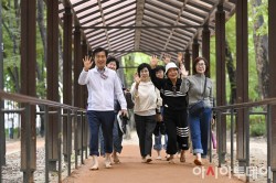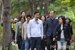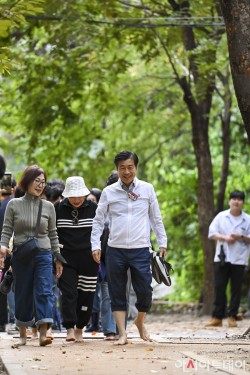 [포토] 주민들과 길마중 초록숲길 내 황톳길 걷는 전성수 서초구청장