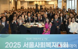 오세훈 서울시장이 13일 오후 서울 중구 프레지던트호텔에서 제26회 사회복지의날을 맞아 열린 ‘2025 서울사회복지대회’에서 참석자들과 기념촬영을 하고 있다. /정재훈 기자