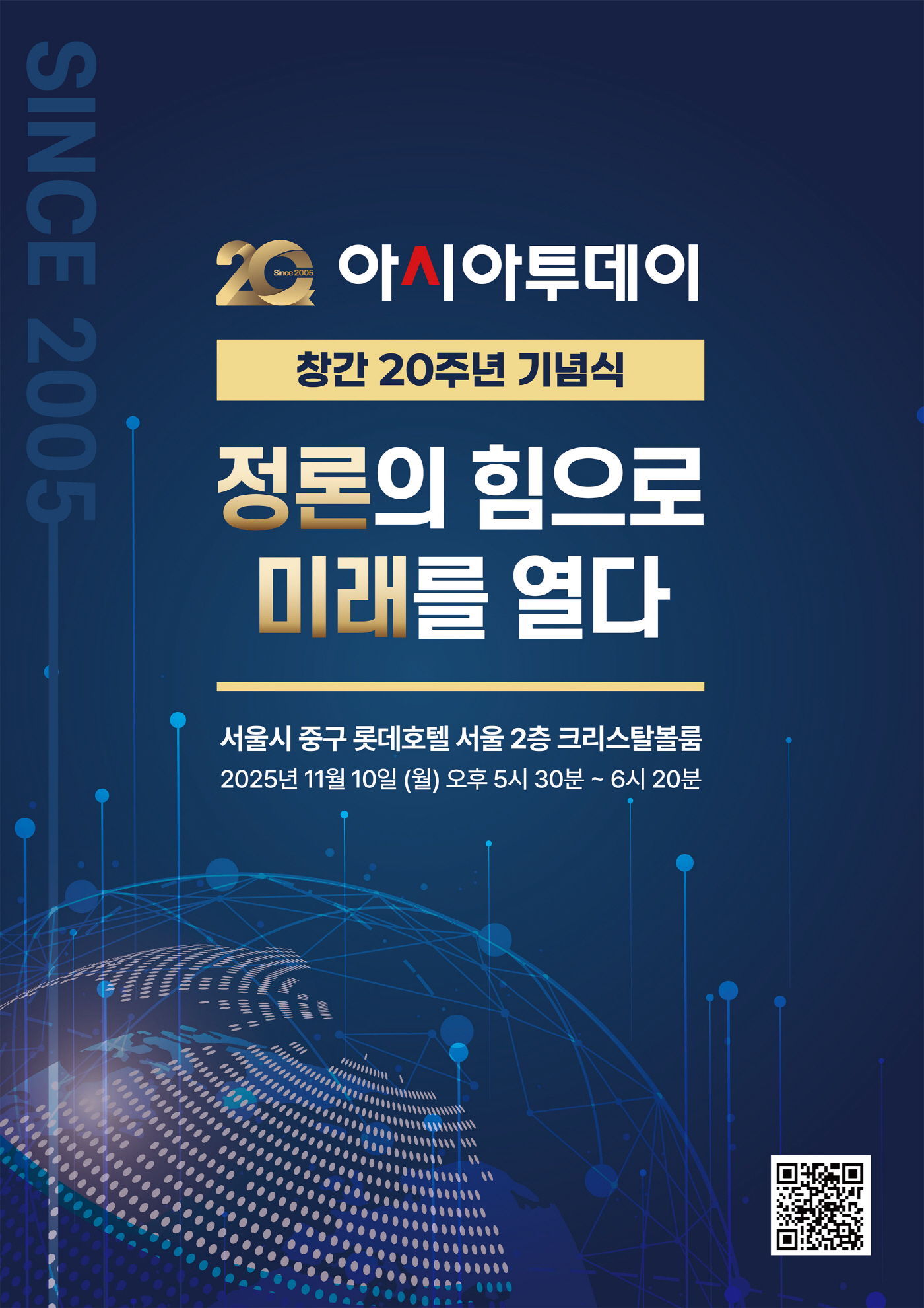 아시아투데이는 창간 20주년을 맞아 '정론의 힘으로 미래를 열다'라는 새로운 기치를 내걸고 창간 기념식을 개최합니다. 국민 여러분의 많은 관심과 성원을 부탁드립니다.