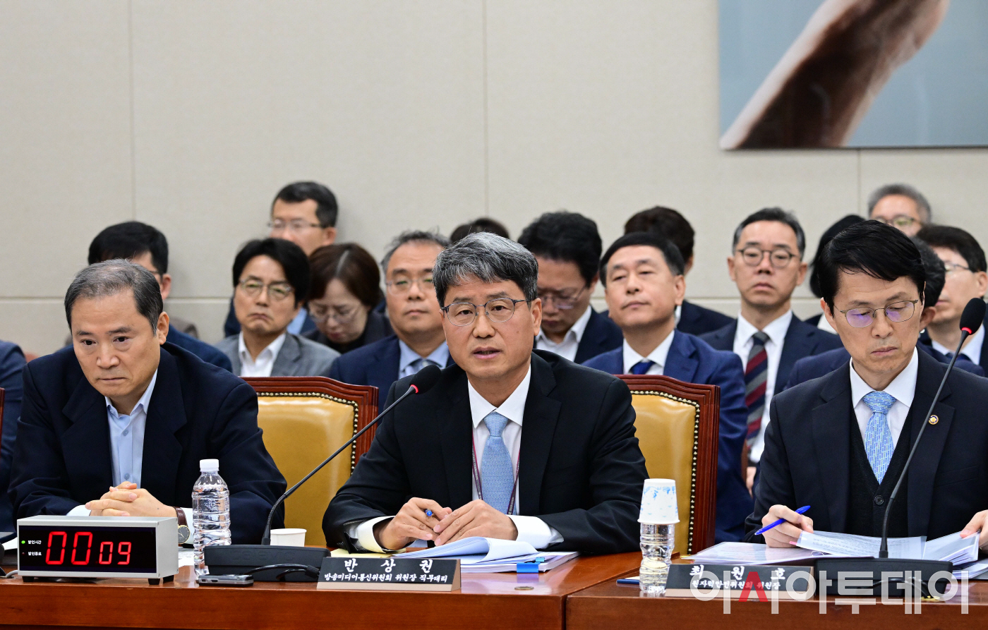 반상권 방송미디어통신위원회 위원장 직무대리가 30일 국회에서 열린 방송통신위원회 등에 대한 종합감사에서 의원들의 질의에 답하고 있다.