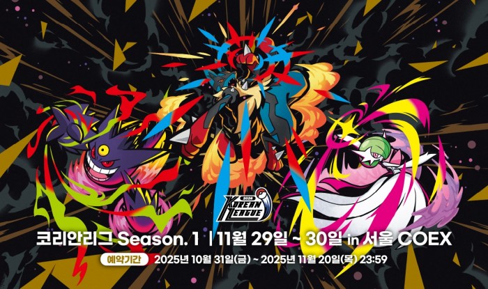 포켓몬코리아는 포켓몬 카드 게임 '2026 코리안리그 시즌1'을 오는 11월 29일과 30일 양일간 서울 코엑스 전시장 B1 홀에서 개최한다고 밝혔다.